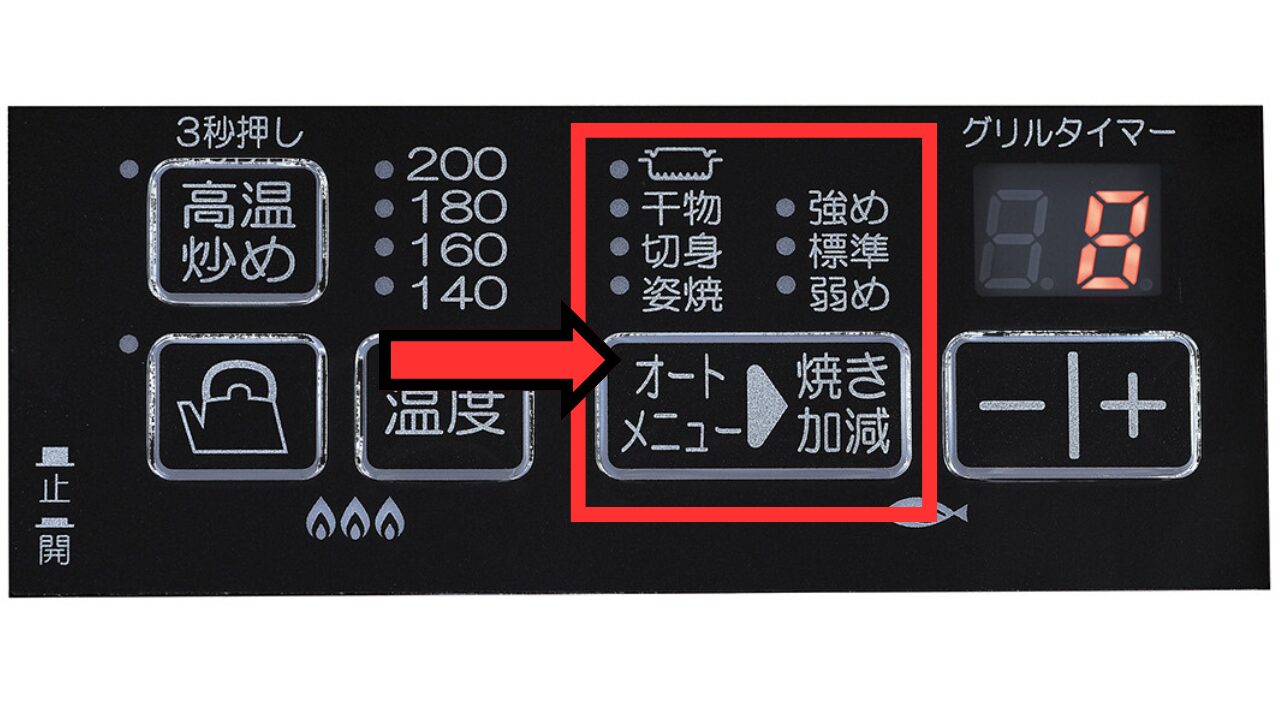 魚やトーストなどをボタン一つで、いい感じに焼き上げてくれる機能です(詳しくは後の章で解説します)。