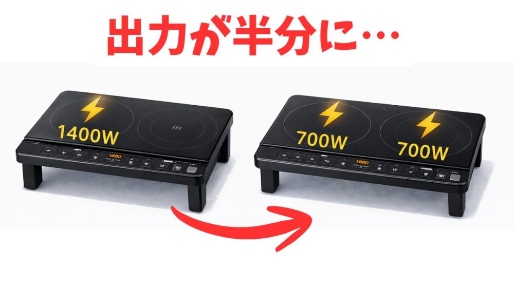 つまり、卓上IHでは最大火力を左右同時に使えないことになり、料理の同時進行では致命的に力不足と言えます。